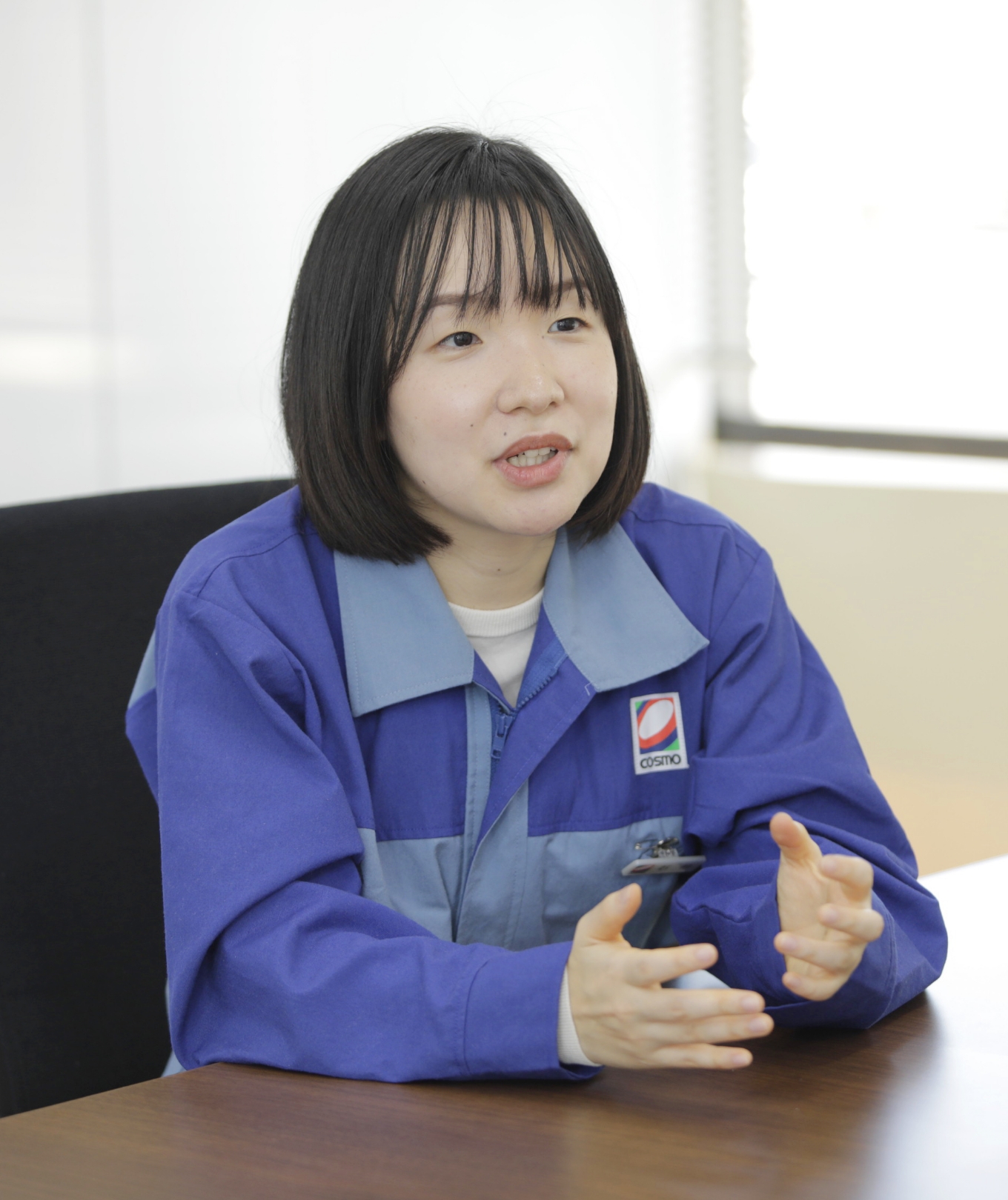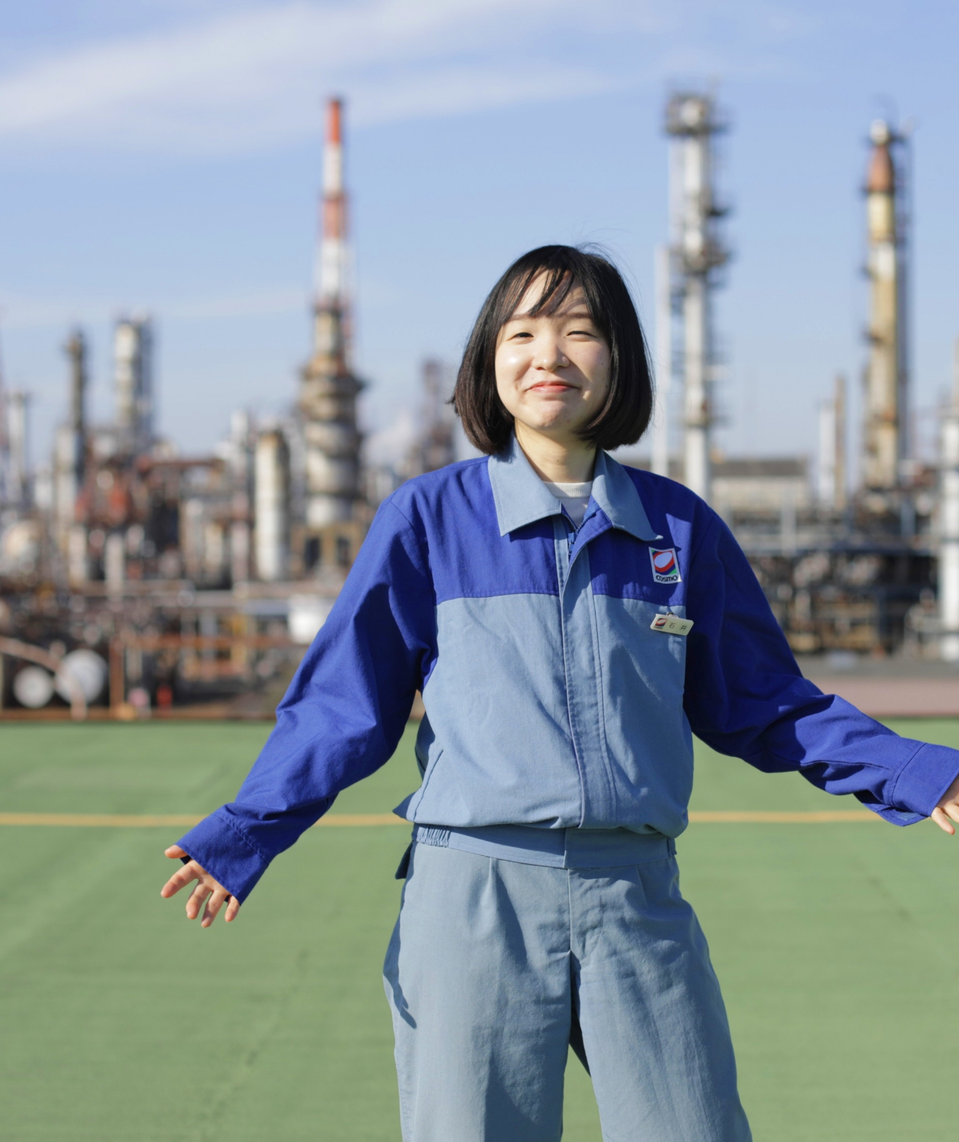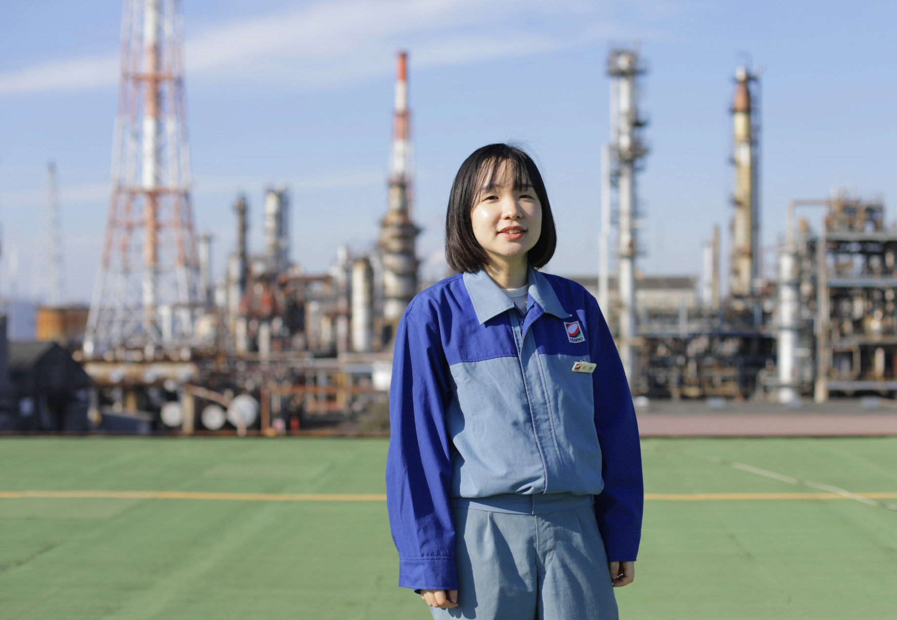 製油所の製造課から技術課へと異動する中で、仕事の対象範囲が広がることに私自身面白さを感じることができました。将来的には更に範囲を拡げて、コスモ石油全体としてのカーボンニュートラルに向けた取り組みや、未来について考える仕事にも挑戦してみたいと思っています。コスモに入社して、一番自分の変化を感じることは「諦めなくなったこと」だと思います。自分のことを「飽き性」と思っていた私ですが、コスモで仕事をしてさまざまな人と一緒に仕事をする中で、「やりきる責任感」や「やりきれる自信」を育んでもらったと思います。安心して挑戦できるコスモというフィールドで、会社や社会の未来に向けて挑戦を続けていきたいと思います。